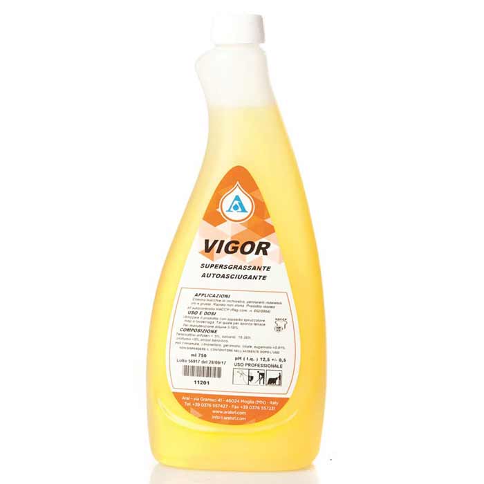 Usare VIGOR significa affidarvi a un sgrassatore professionale HACCP che accelera i tempi di pulizia, riduce la fatica operativa e assicura risultati visibili: le superfici tornano pulite, libere da residui oleosi, pigmenti o graffi grafite. L’azione autoasciugante consente di ridurre i tempi di fermo o attesa per le superfici trattate. Inoltre, essendo un prodotto della ARAL Srl — azienda con oltre 20 anni nel settore della distribuzione di prodotti professionali di qualità — ottieni un supporto tecnico e una tracciabilità affidabile.